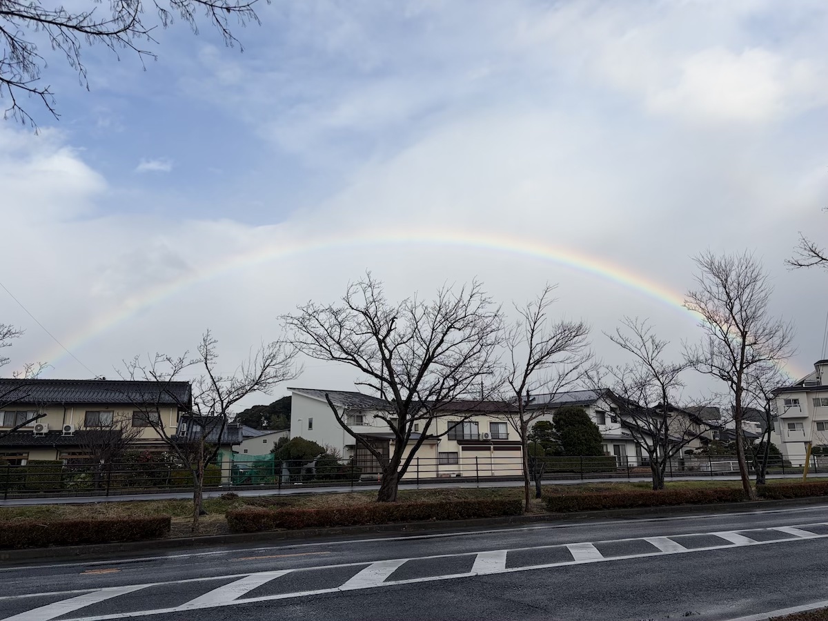 昨年末、12月29日に年末の後片付けの途中に見えた虹です。綺麗な半円形に見えて気持ちが良くなり、つい写真を撮ってしまいました。